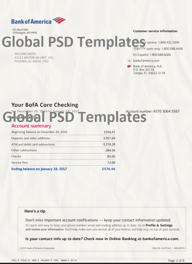 Bank of America Statement Template