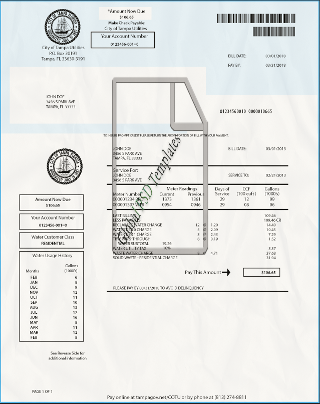 Florida Water Bill Template