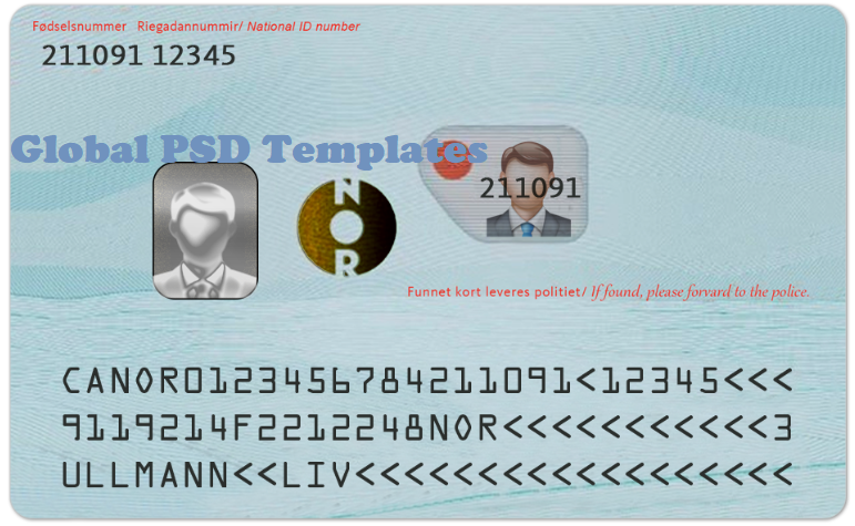 This Norway ID Card template is a High quality template. You can change the photo, number, name, address, birth date, expiry date, etc. (Fully editable, all fonts included)
