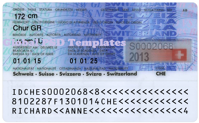 -70%Fully editable Switzerland ID Card PSD Template (photoshop)