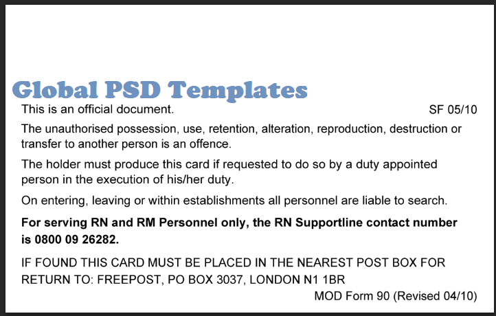 UK Military Card (Front & Back) Template