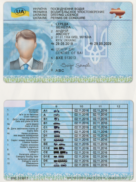 This Ukrainian driving license template is a High quality template (300 dpi). You can change the photo, number, name, address, birth date, expiry date, etc. (Fully editable, all fonts included)
