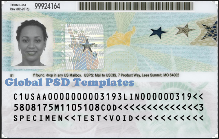 -73%Fully editable USA Green Card PSD Template (photoshop)